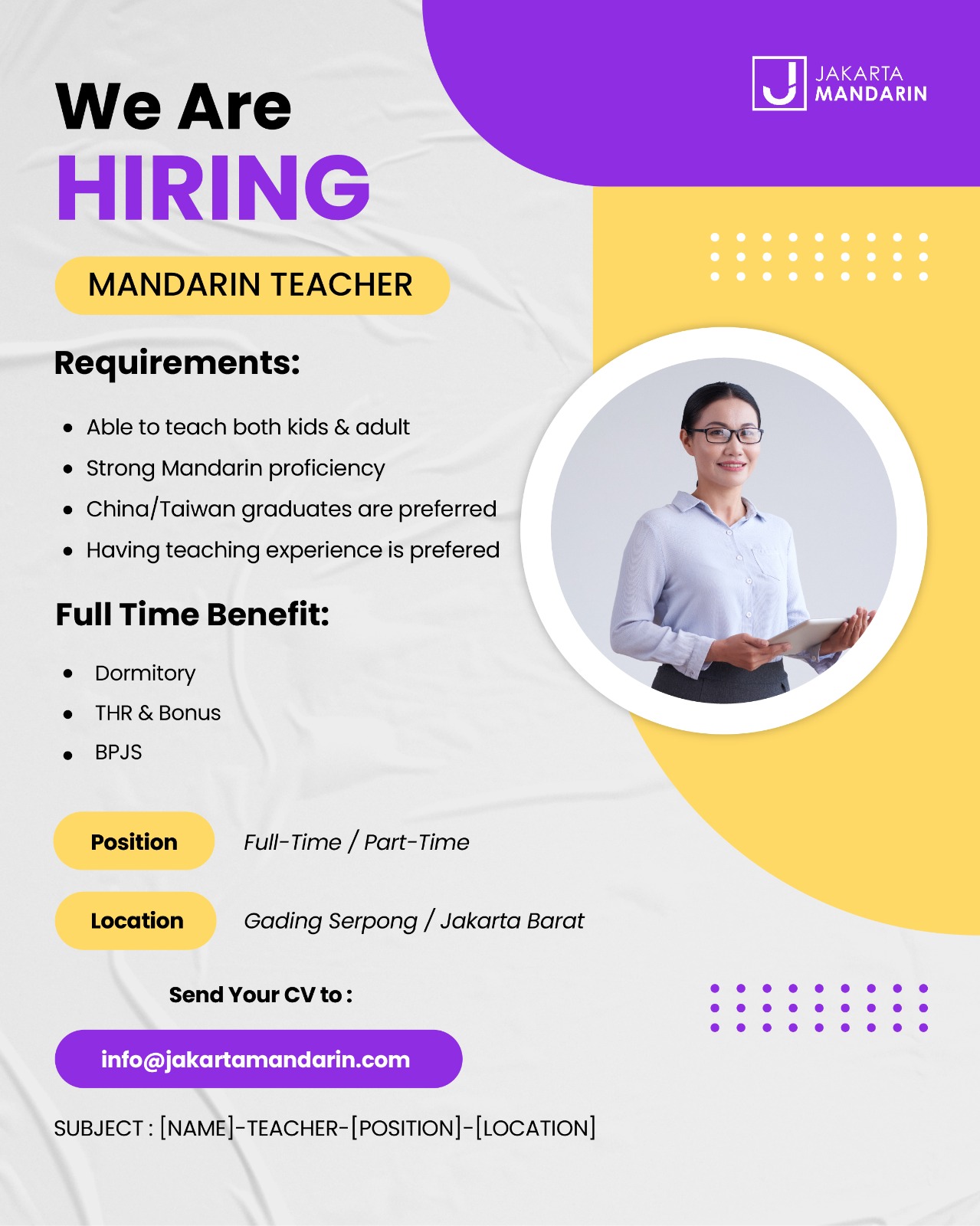 Subject : [NAME]-TEACHER-[POSITION]-[LOCATION]